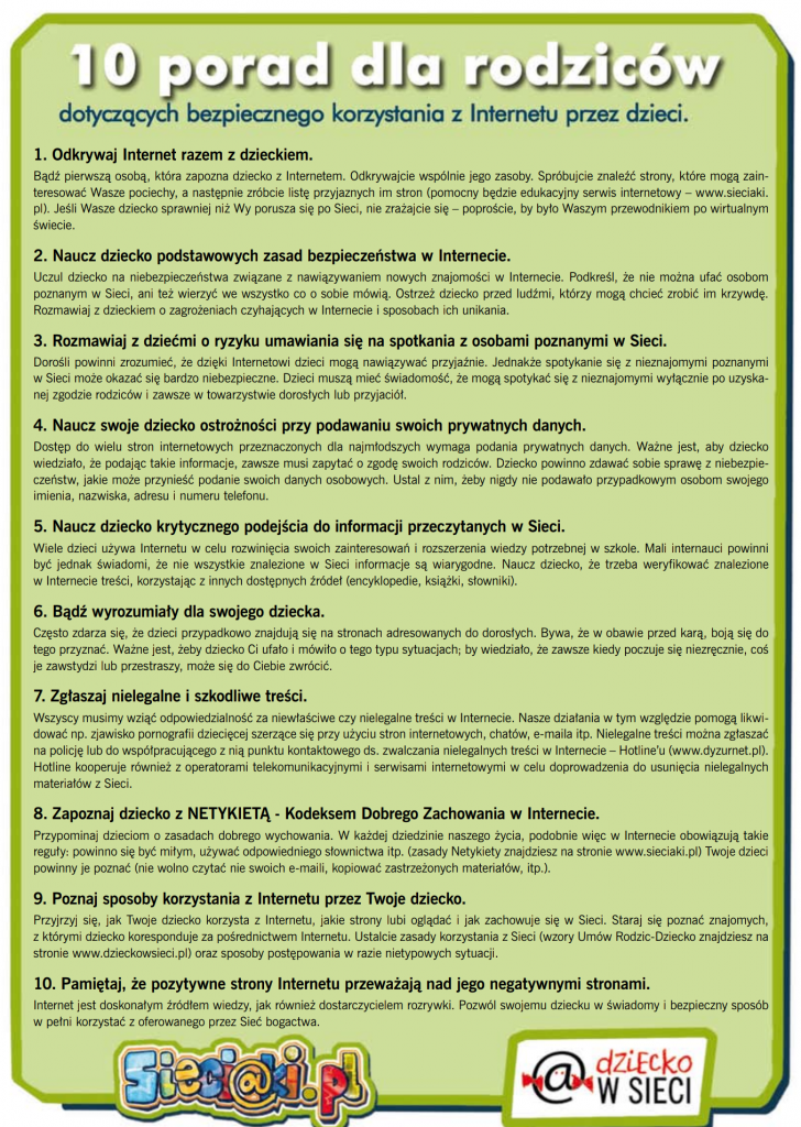 - Lekcji tematycznych o bezpieczeństwie w sieci,